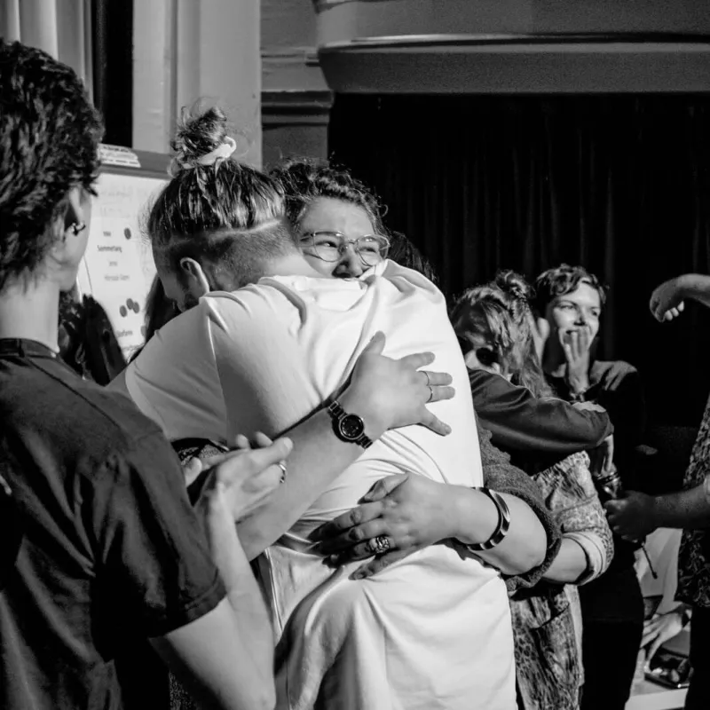 Wir? Sind ein Freundes- und Slamhaufen aus Chemnitz, Leipzig, Jena, Berlin und Hannover. Wir kennen und schätzen uns von den Bühnen, die uns in verschiedenen Konstellationen im ganzen deutschsprachigen Raum immer wieder zusammengewürfelt haben. Mittlerweile sind wir das Spektakel-Kollektiv und machen ernst. Seit Februar `23 laufen unsere ersten Veranstaltungen, viele weitere werden folgen. Ob im Weltecho, im Audimax, am Schauspiel oder in der Oper. Wir bringen Liveliteratur in aufregender und spektakulärer Form an die Spielstätten dieser Stadt und ins Umland. Wir machen Workshops, Texte und Bühne im Slam-Gedanken: Nahbar, inklusiv, mitreißend fürs Publikum, nah am Zeitgeist.